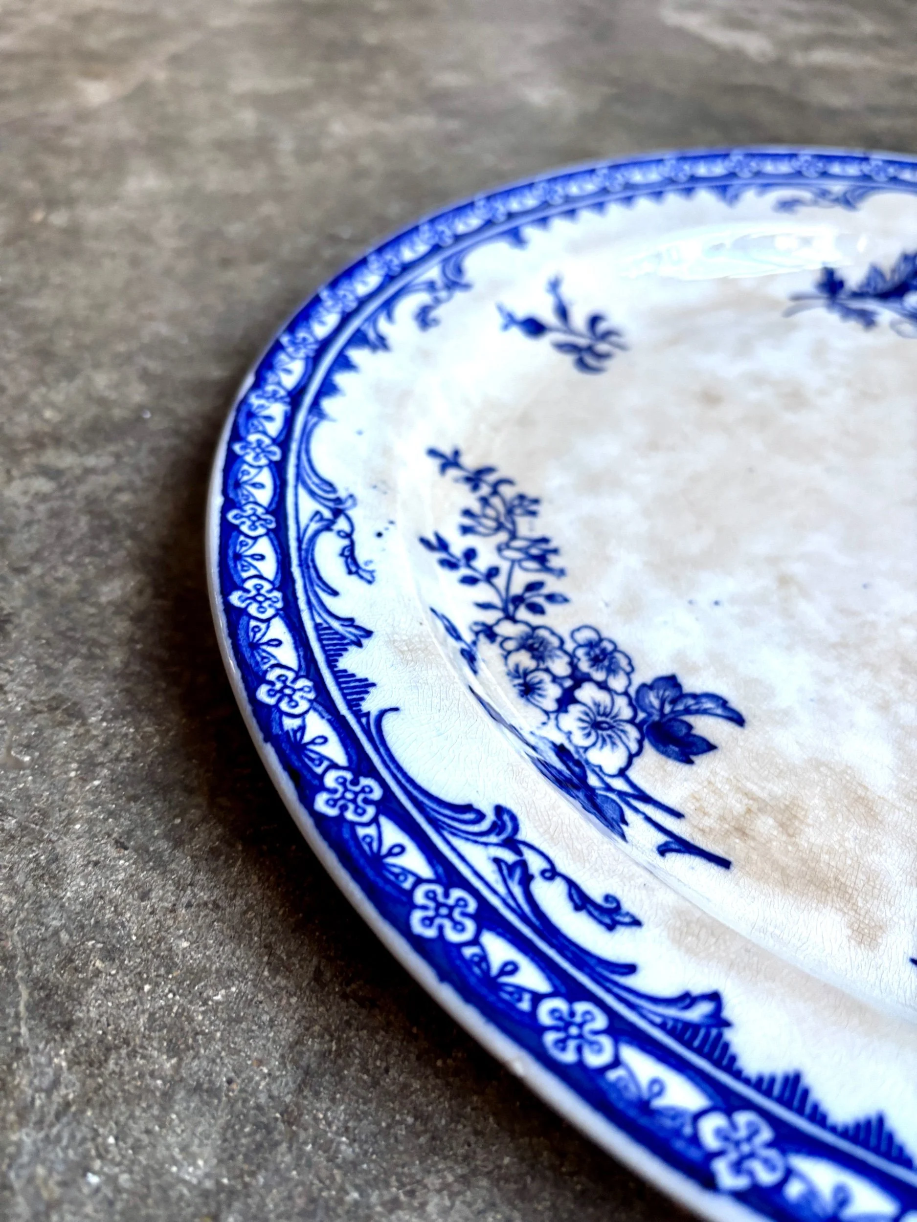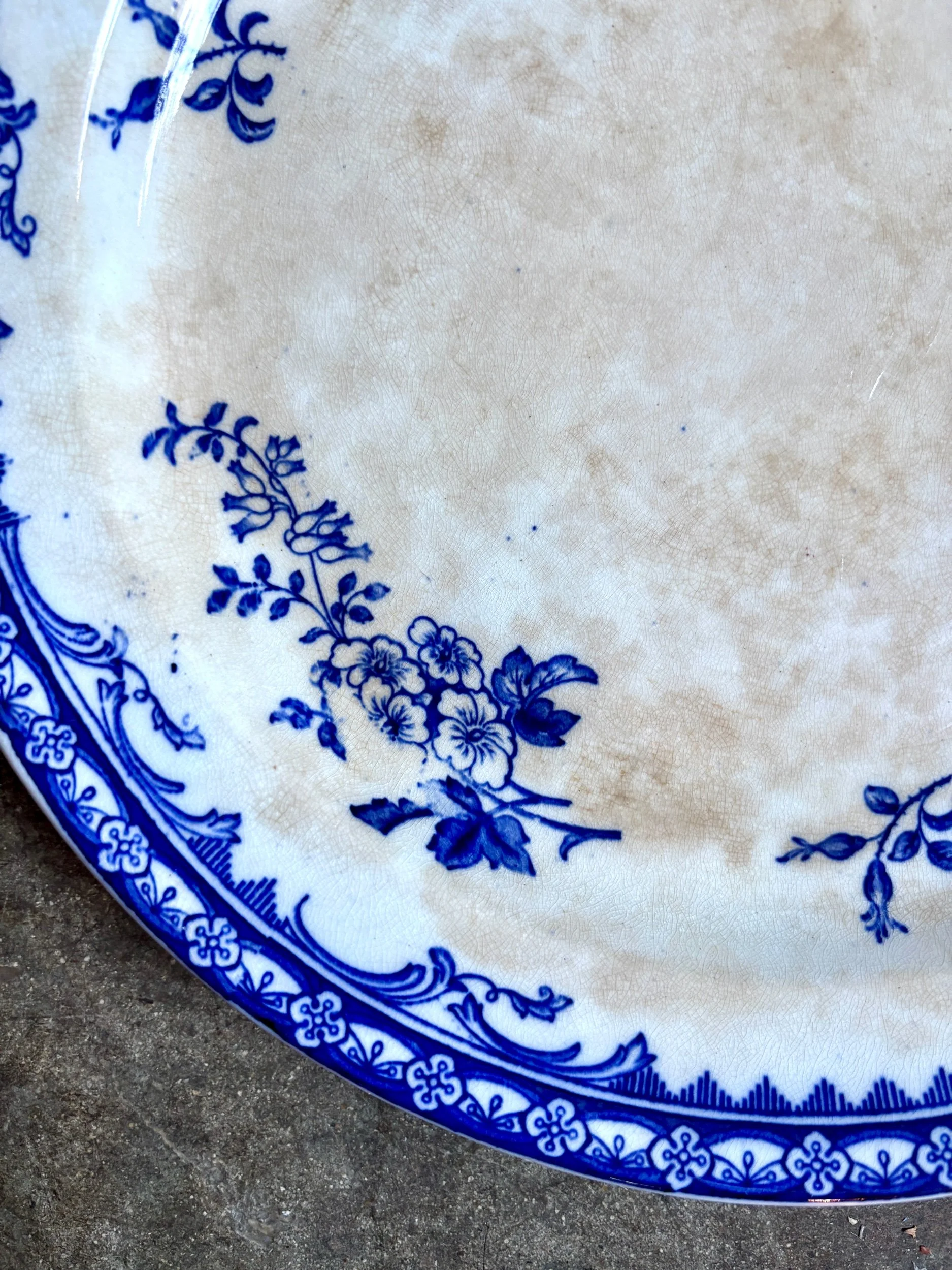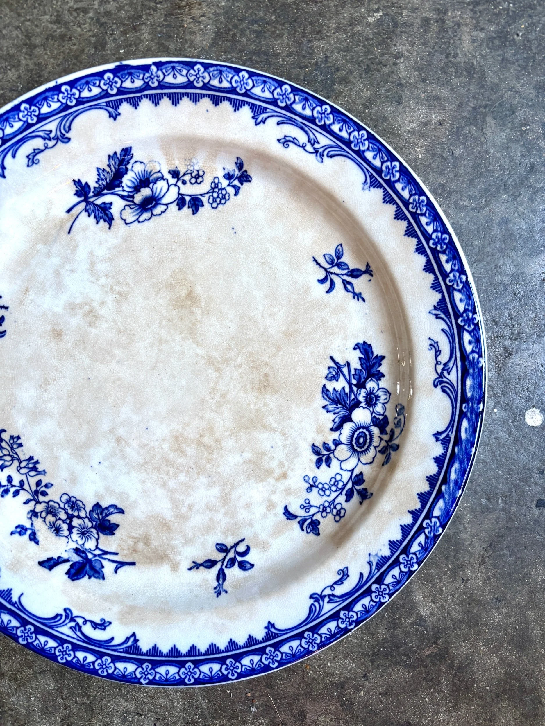 6 assiettes creuses Staffordshire en terre de fer bleue