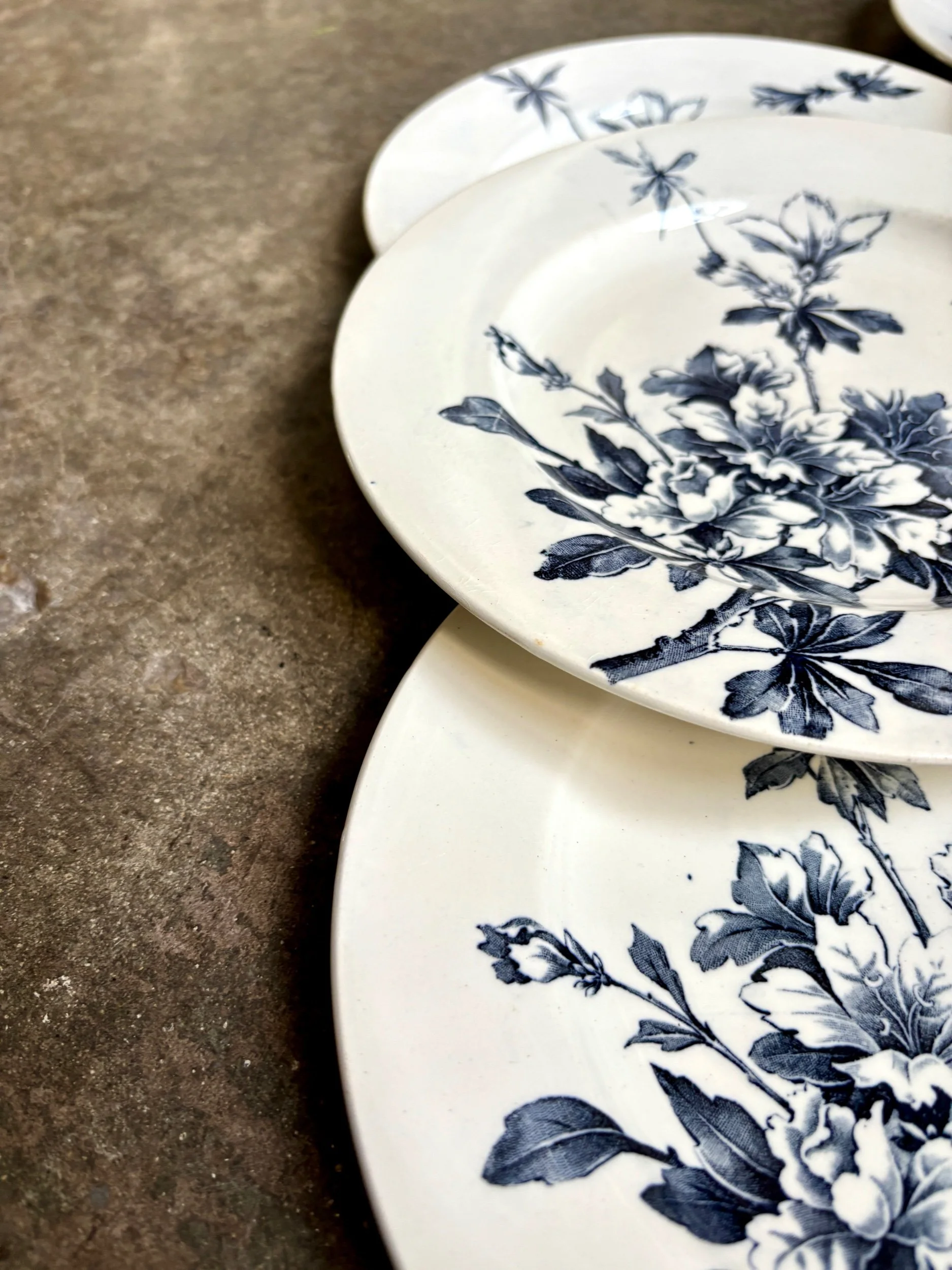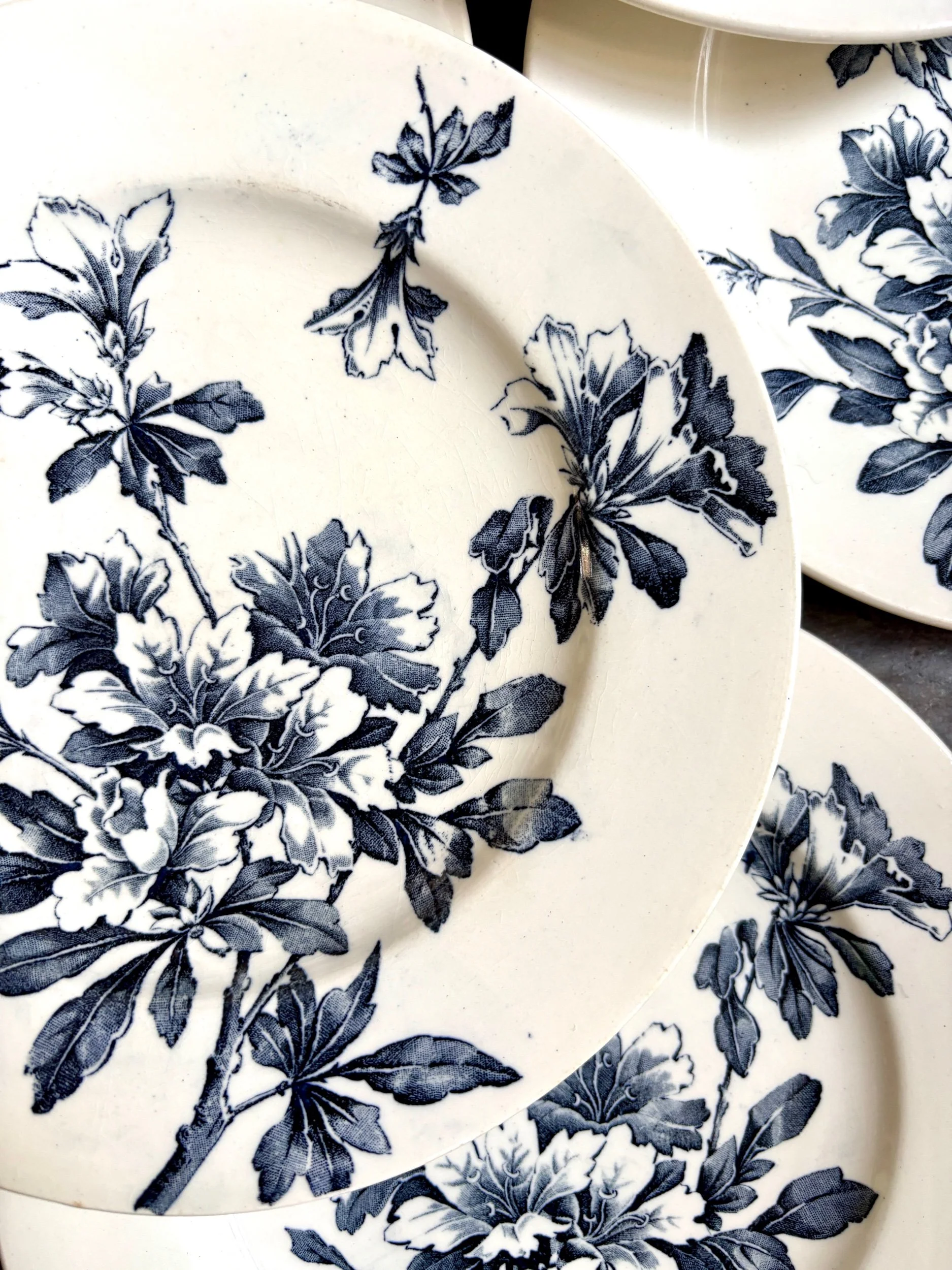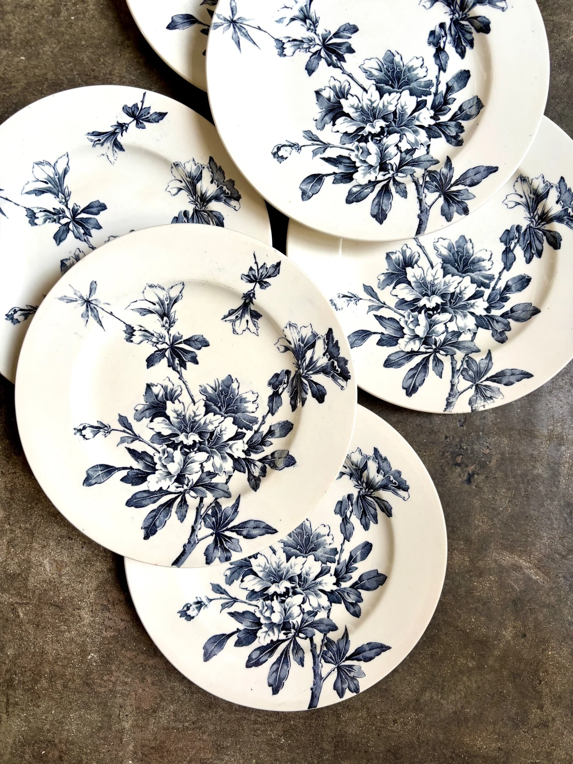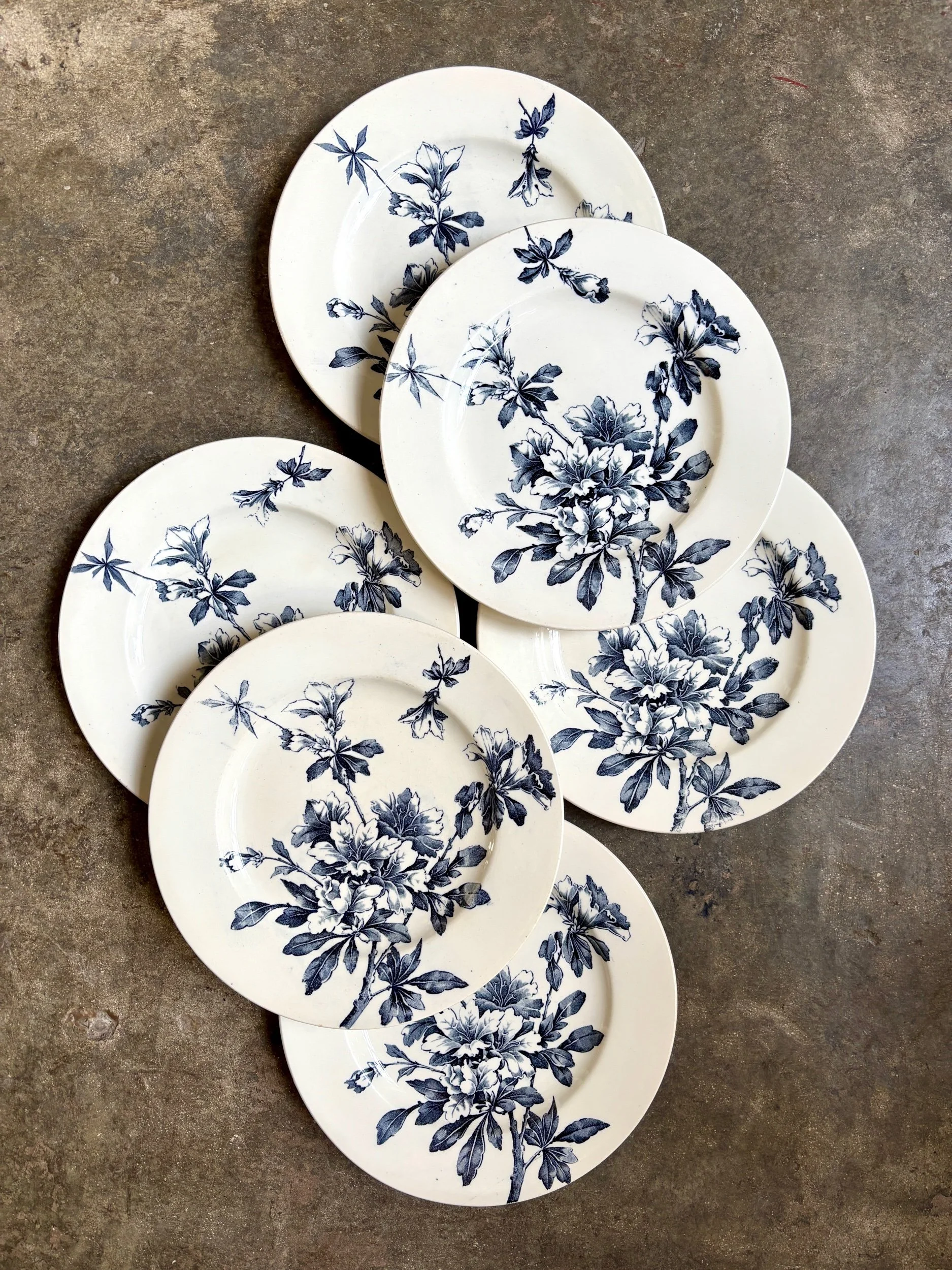 6 assiettes à dessert Lunéville en terre de fer bleue, service "Azaléa"