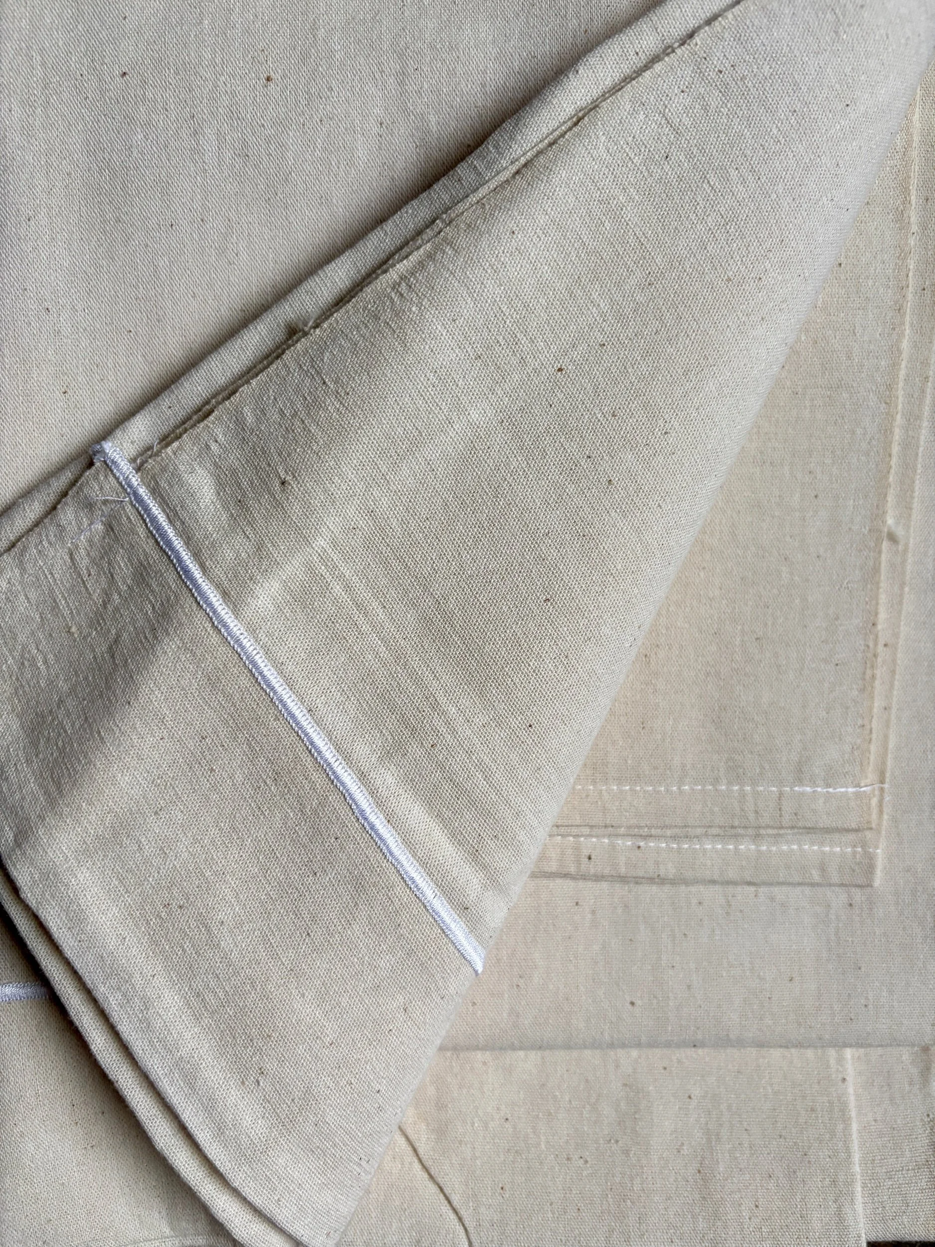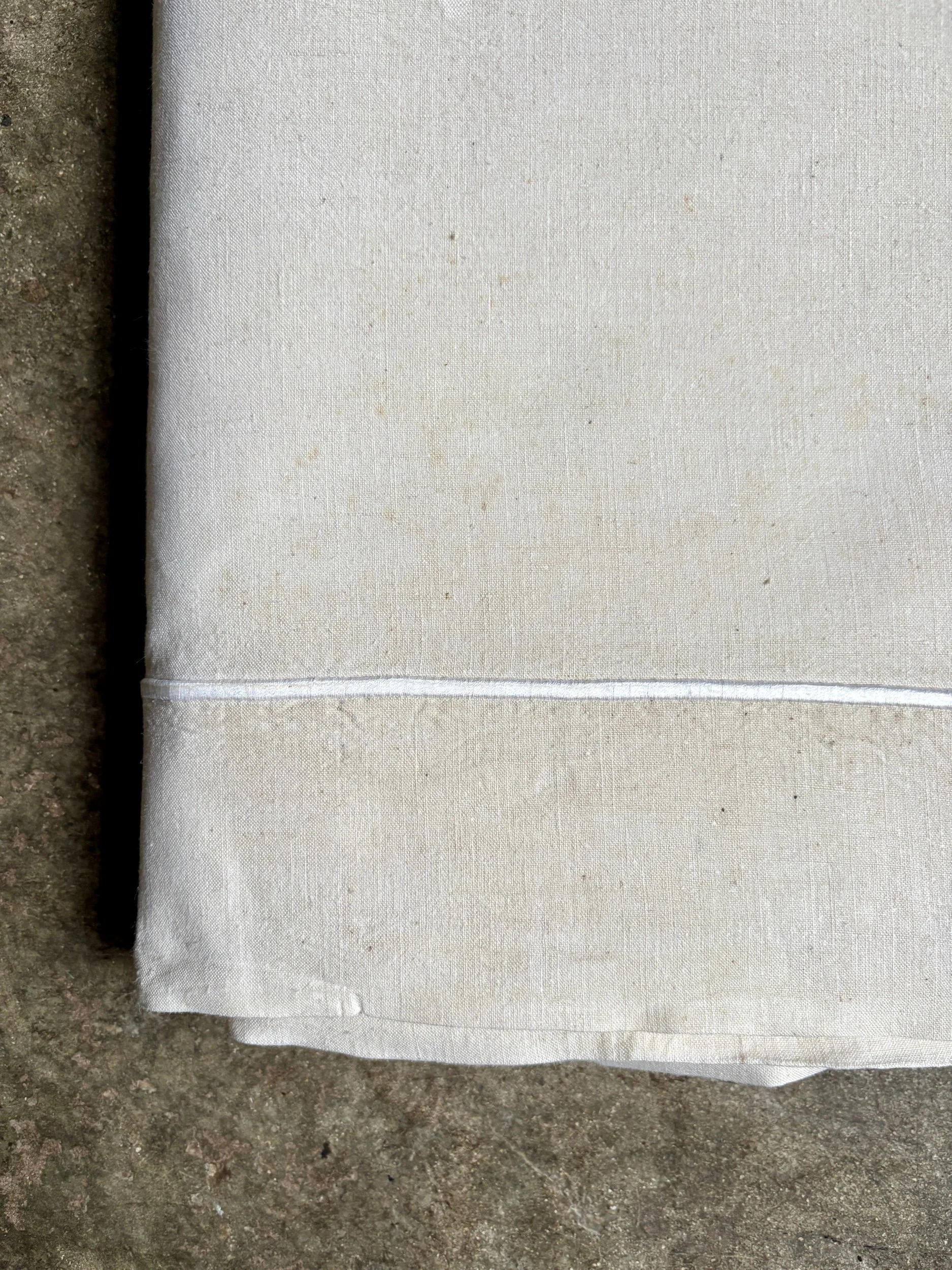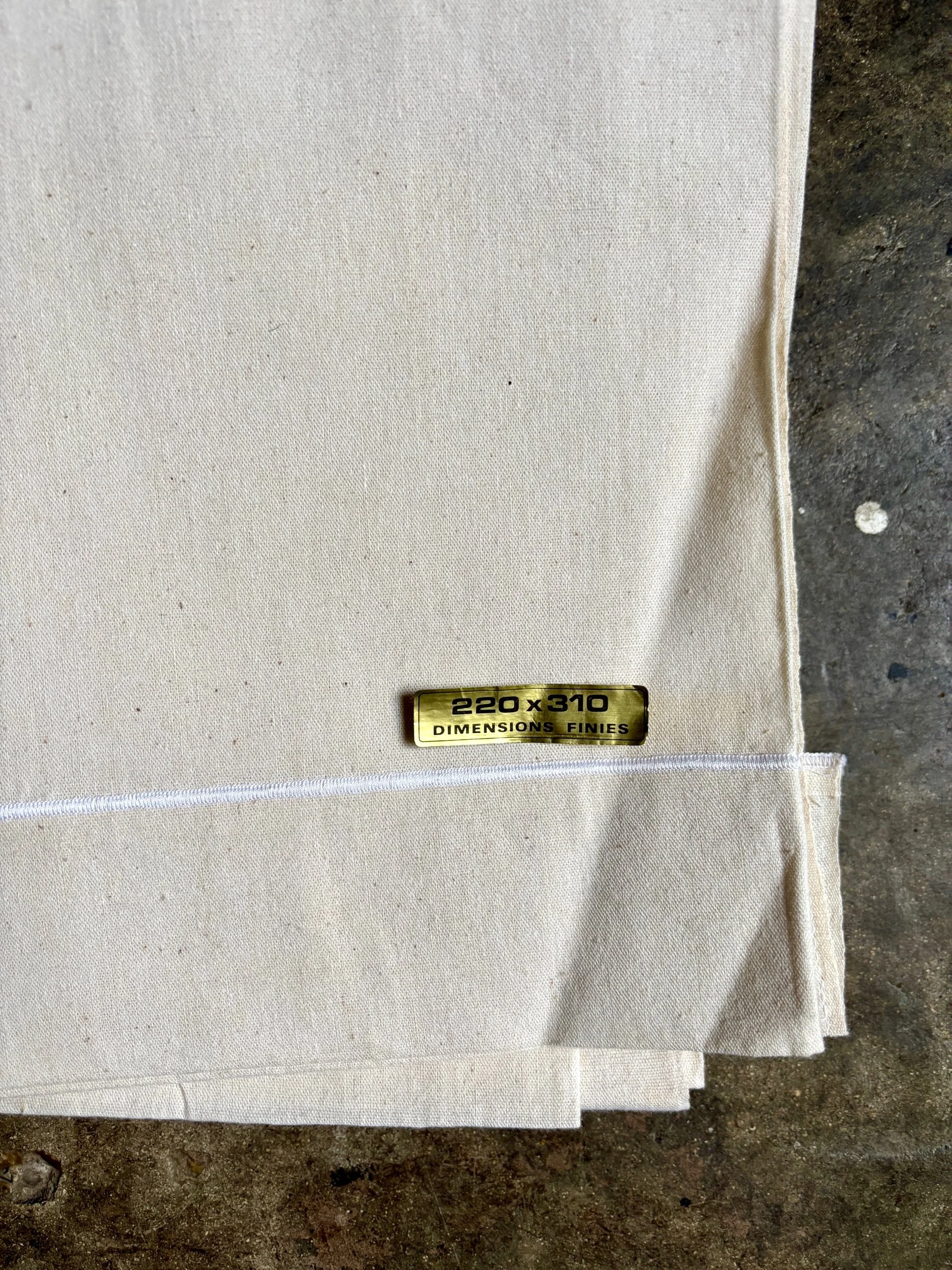 En parfait état puisque nous avons acquis un lot de draps anciens mais neufs, nous les avons tout de même confiés au pressing pour les nettoyer.
