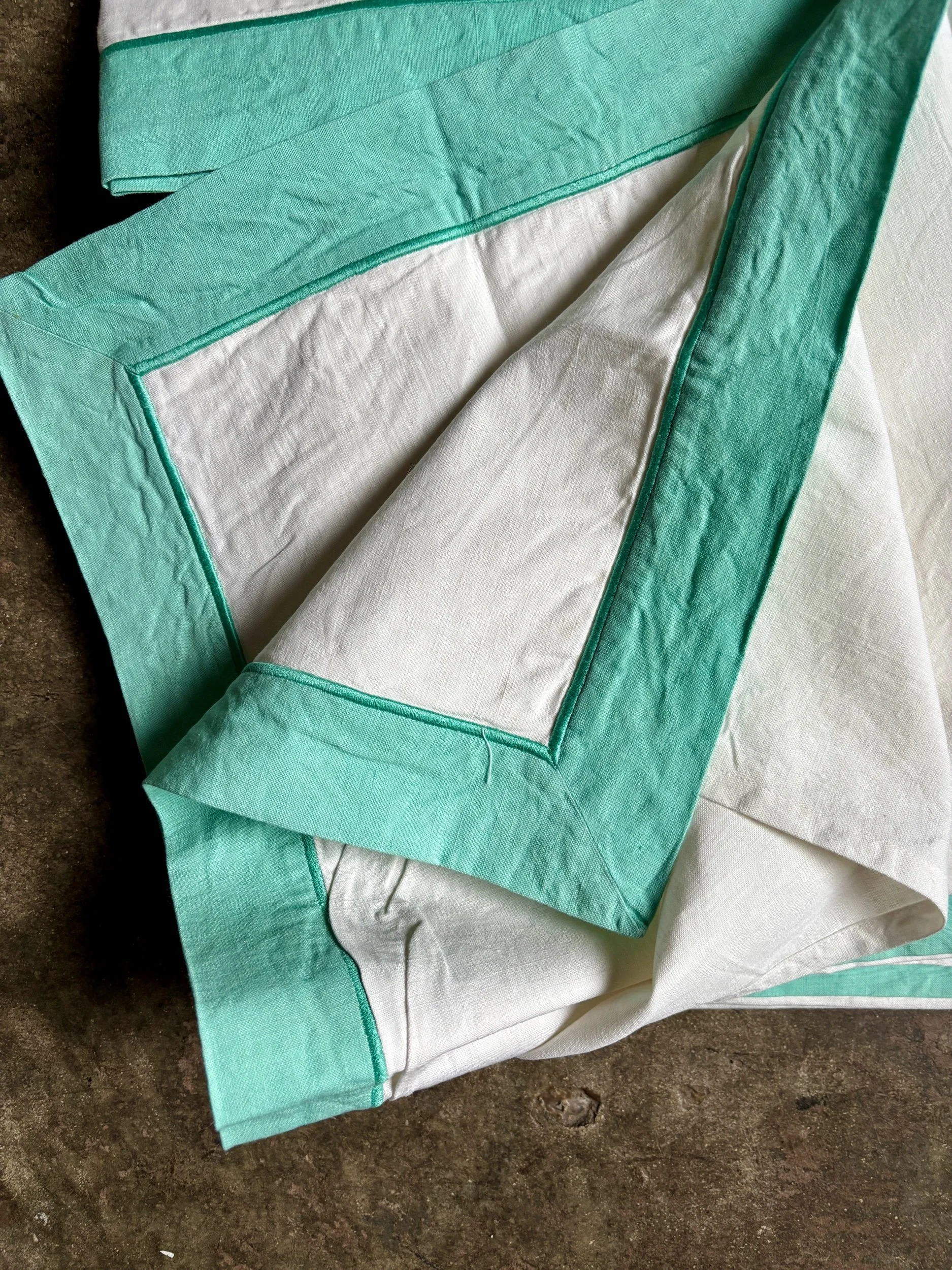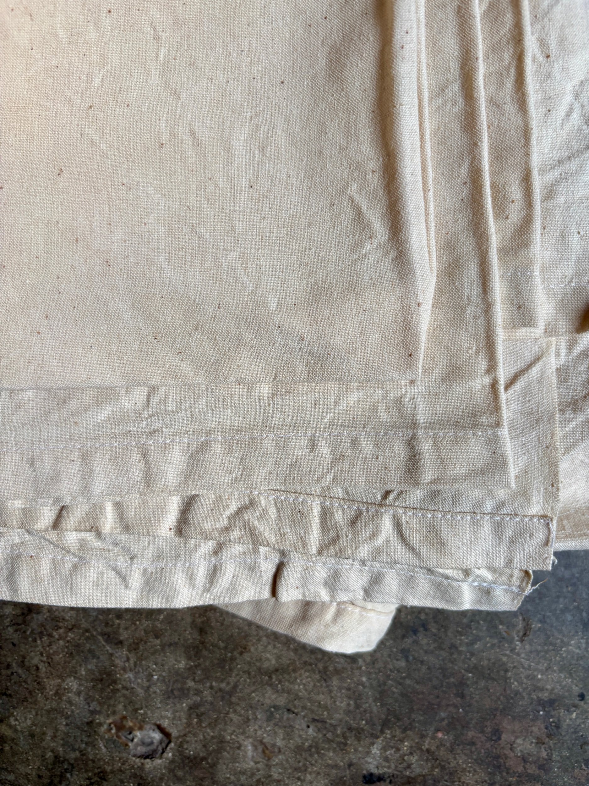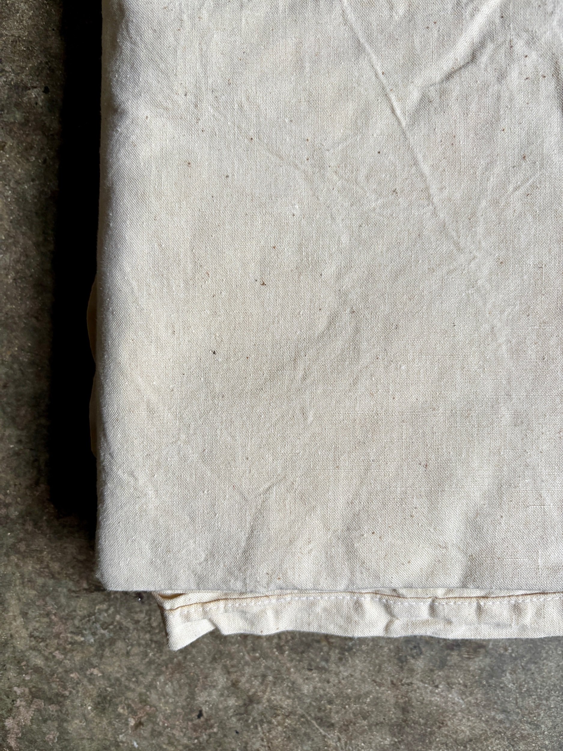 En parfait état puisque nous avons acquis un lot de draps anciens mais neufs, nous les avons tout de même confiés au pressing pour les nettoyer.