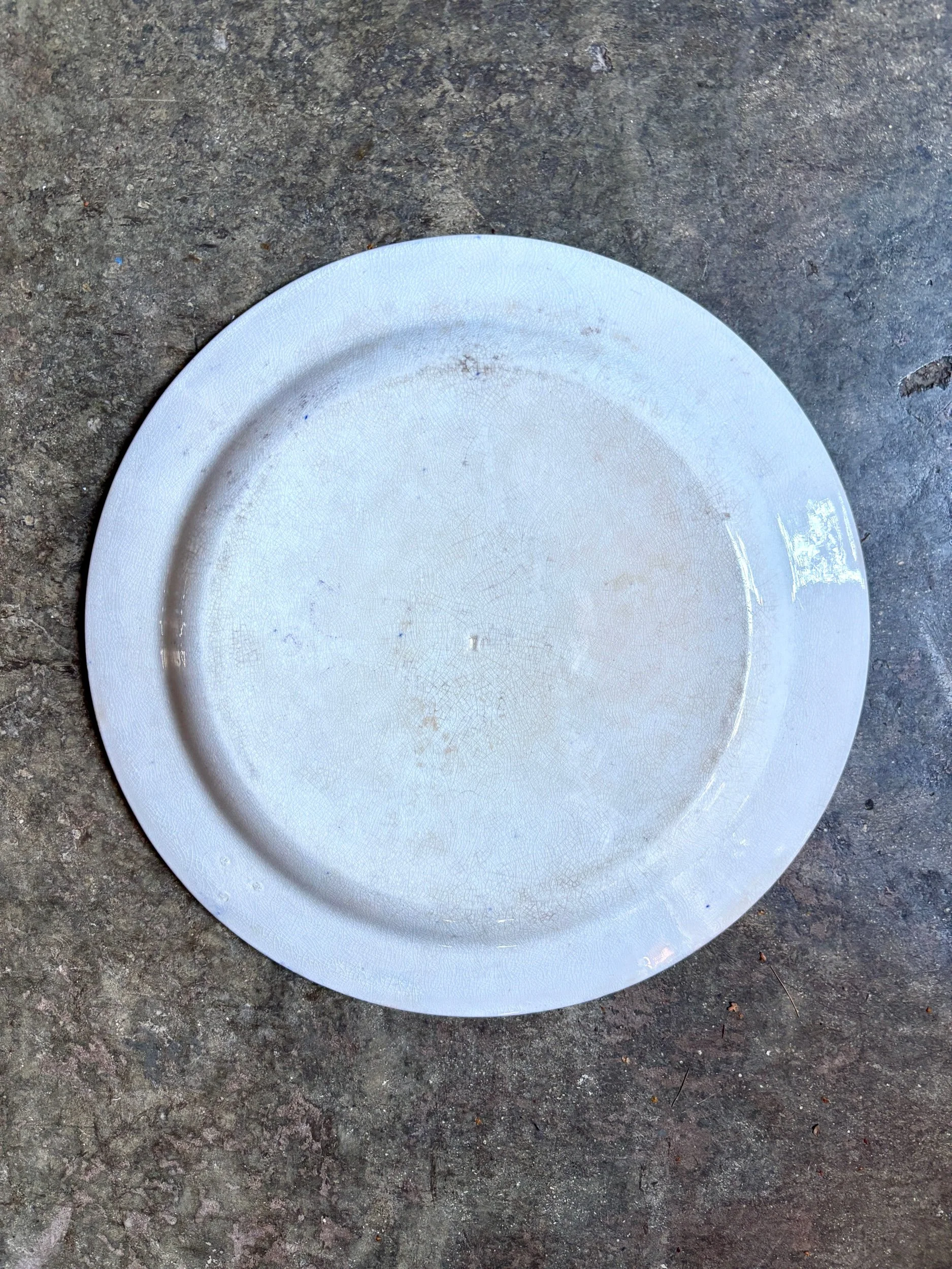 Ce plat, frappé au verso, est en bon état puisqu’il ne présente ni fêle, ni égrenure. Nous notons une coloration uniforme de couleur beige ainsi que des craquelures qui lui confère une patine authentique.