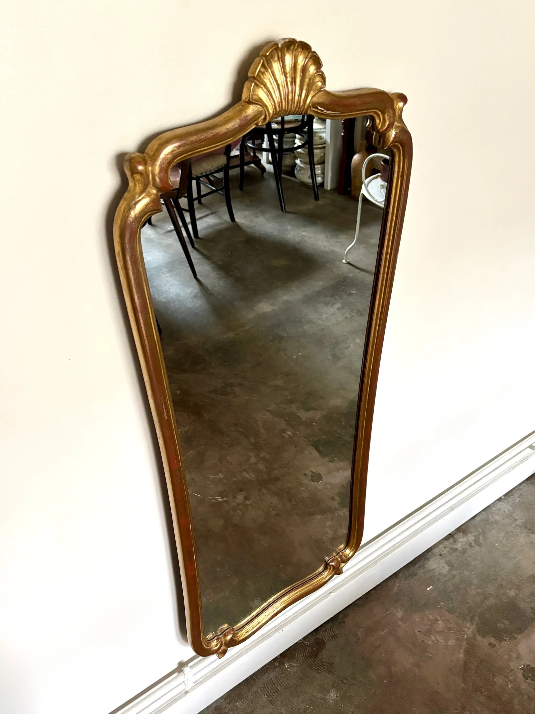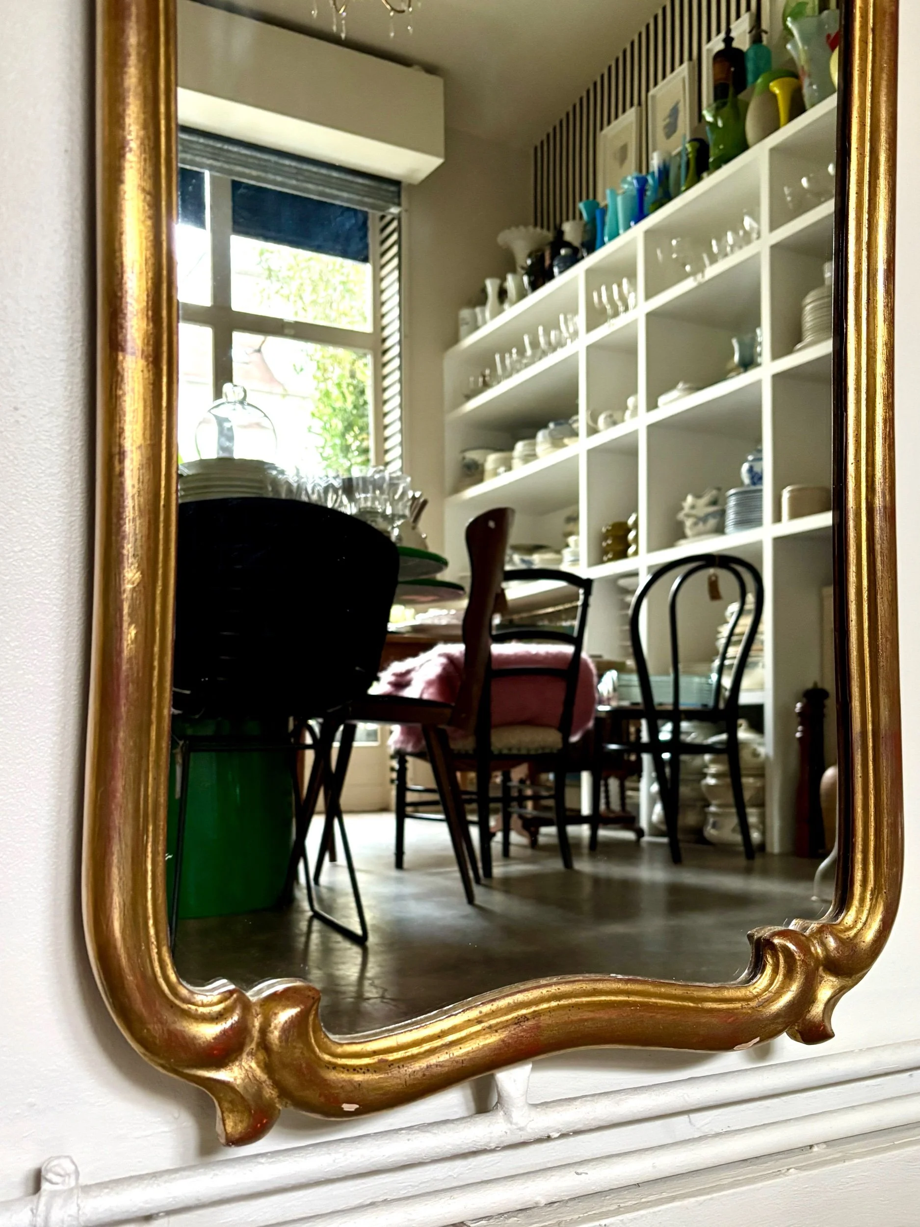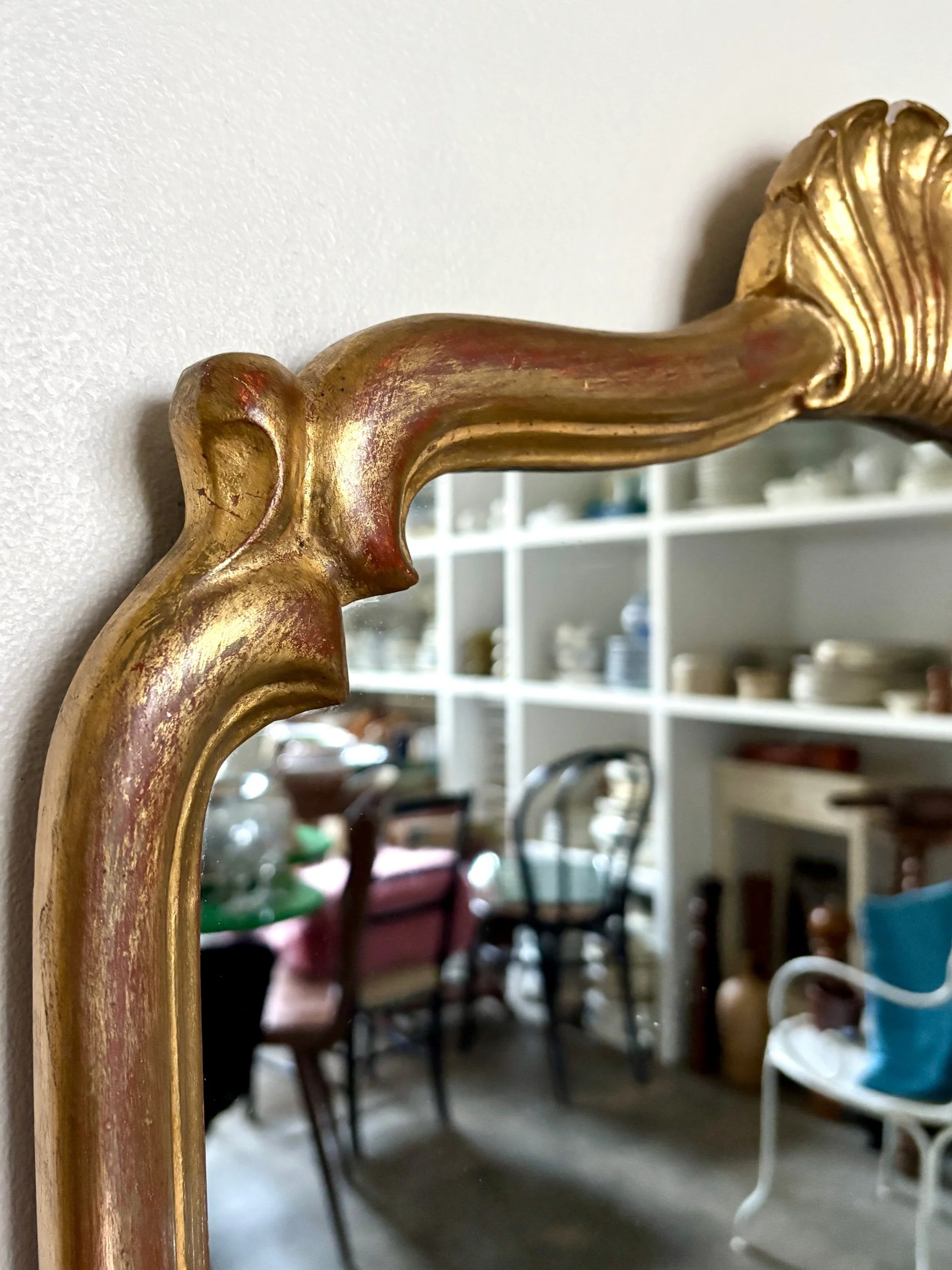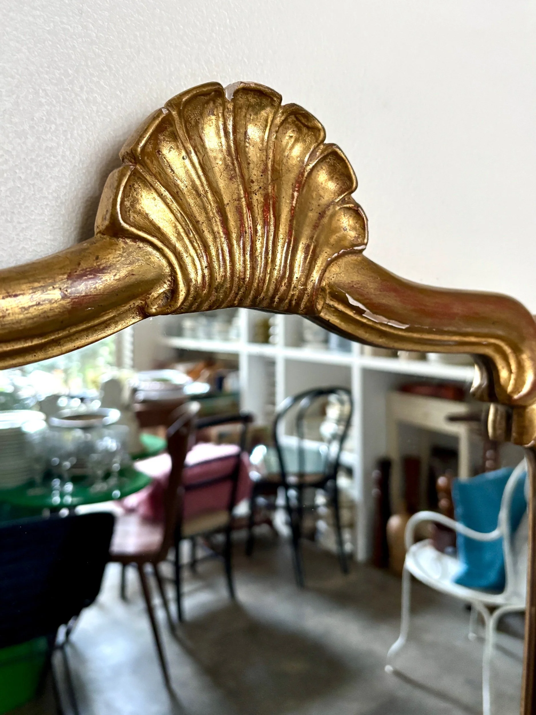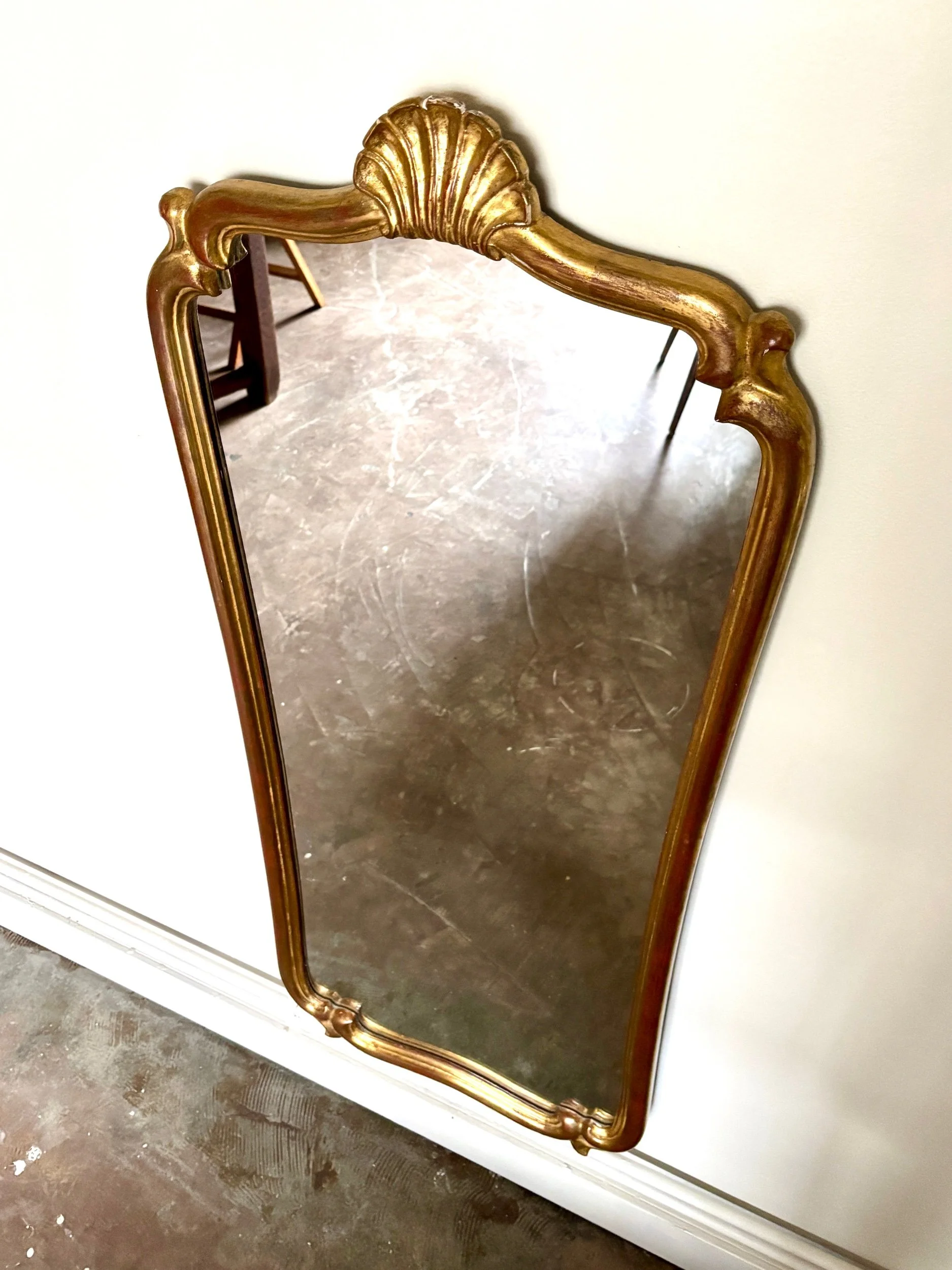 Ce miroir est en bon état malgré quelques manques sur le cadre et quelques micro-rayures sur le miroir qui lui confèrent une patine unique et authentique.