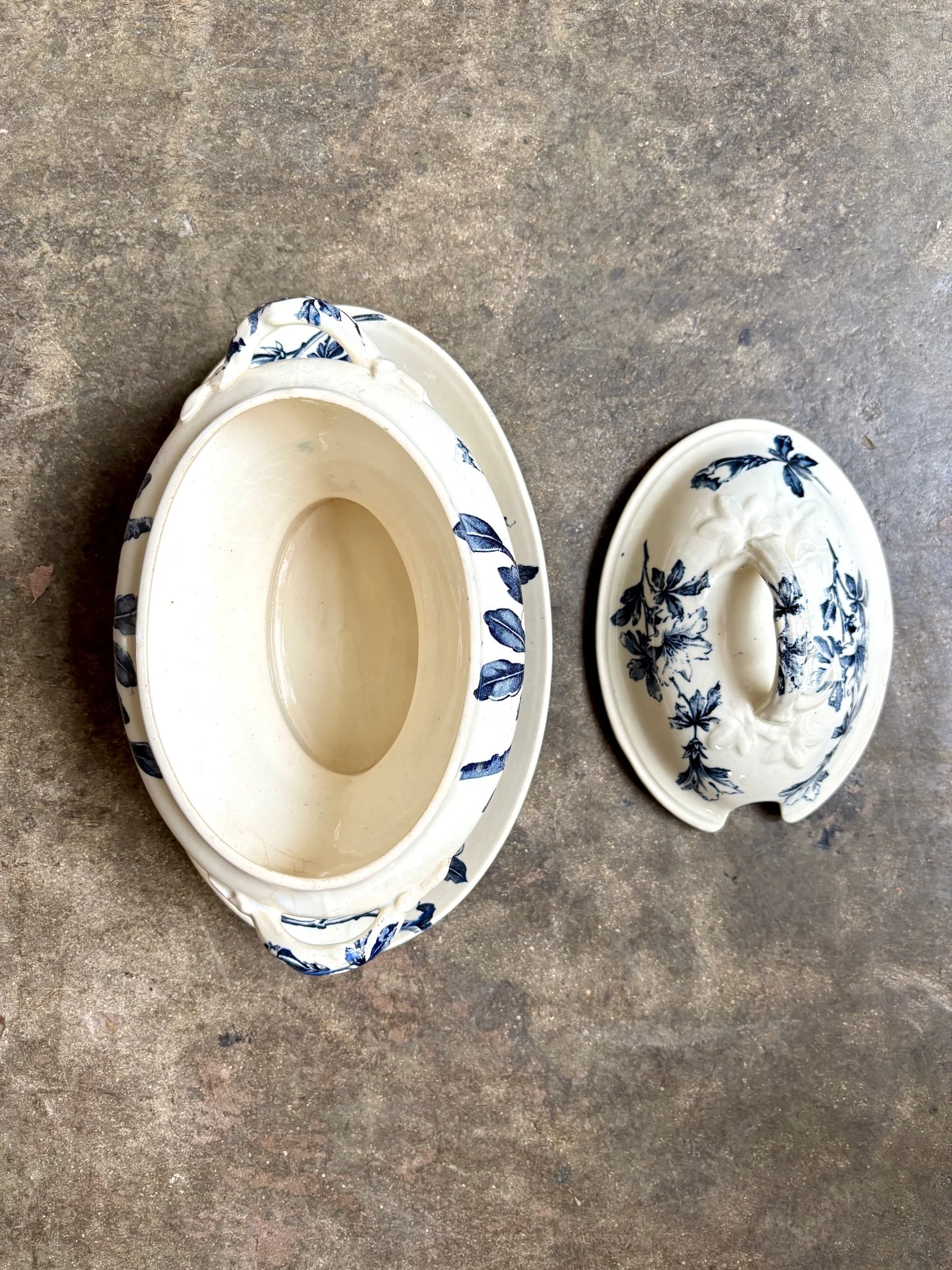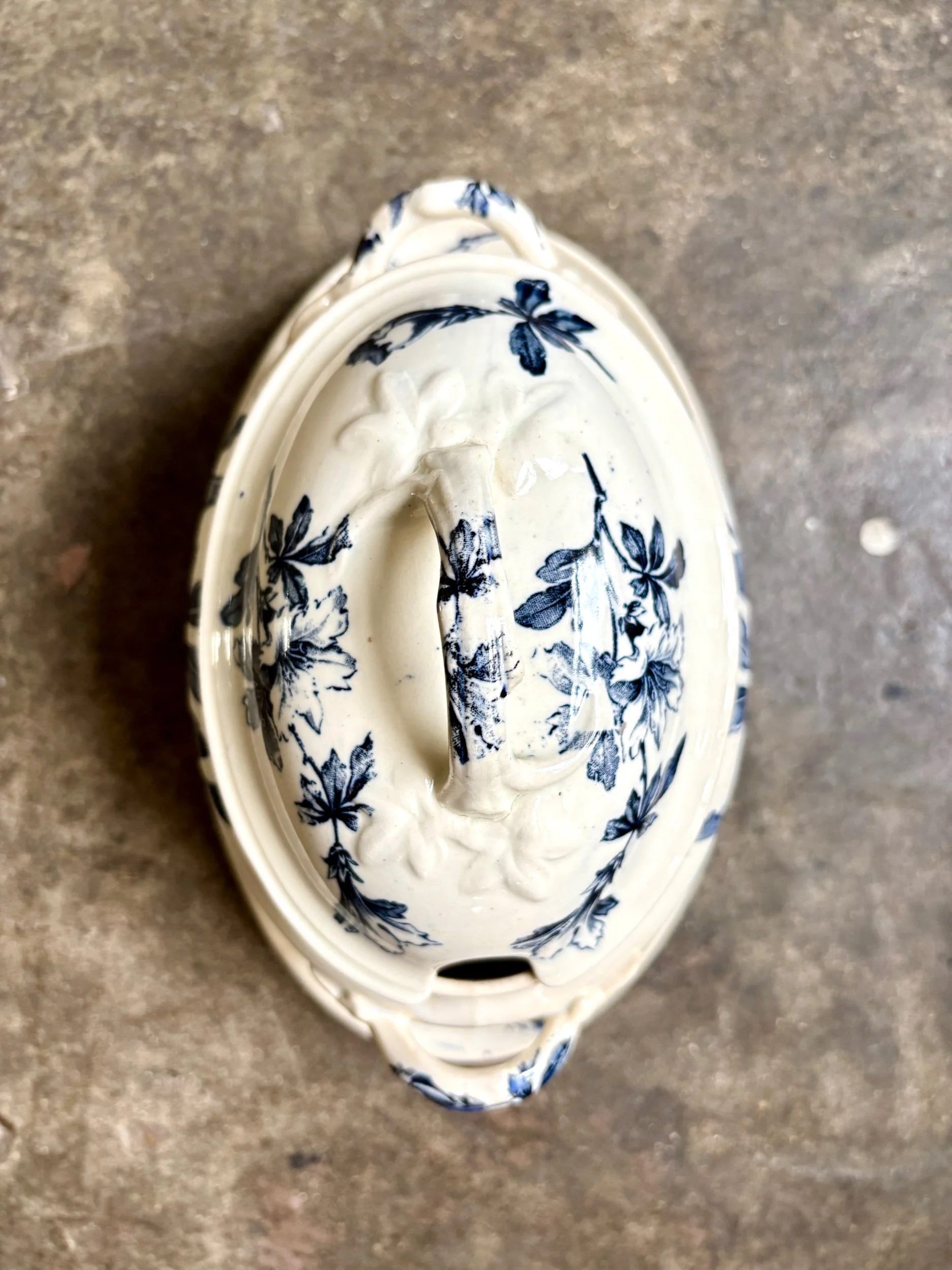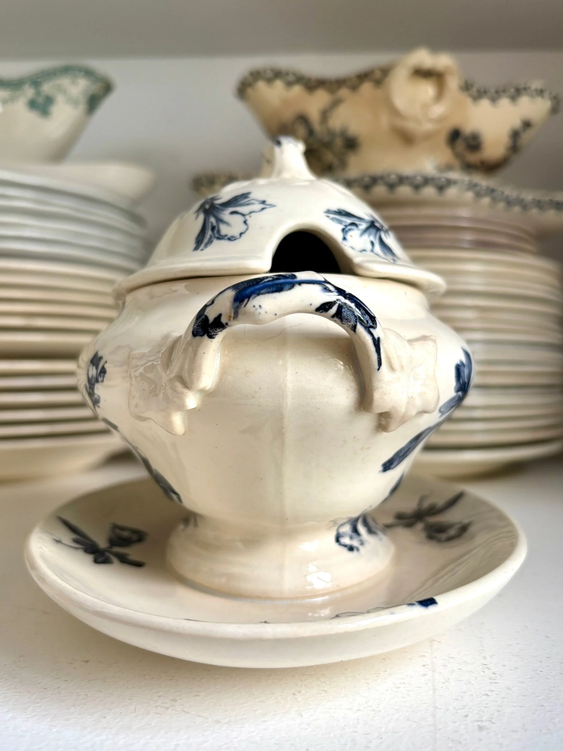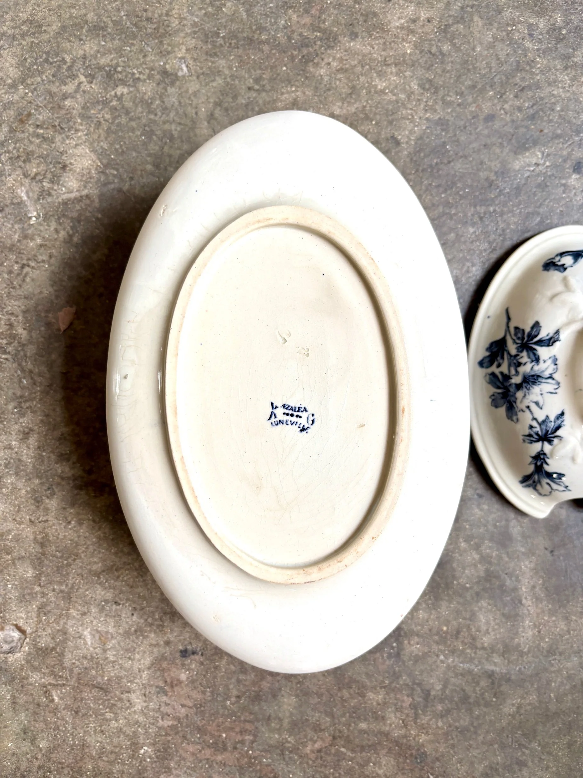 Saucière avec couvercle Lunéville en terre de fer bleue, service "Azaléa"