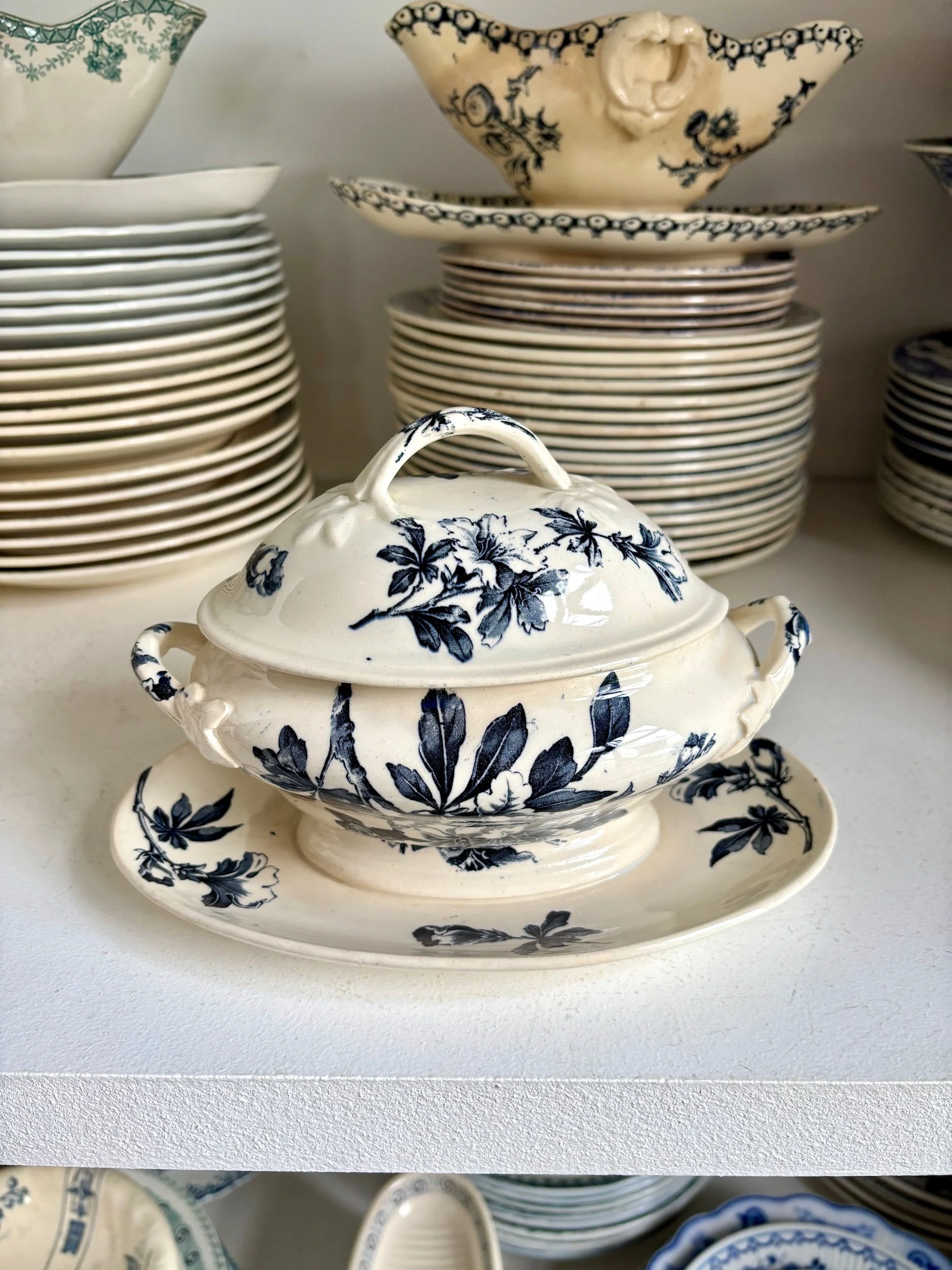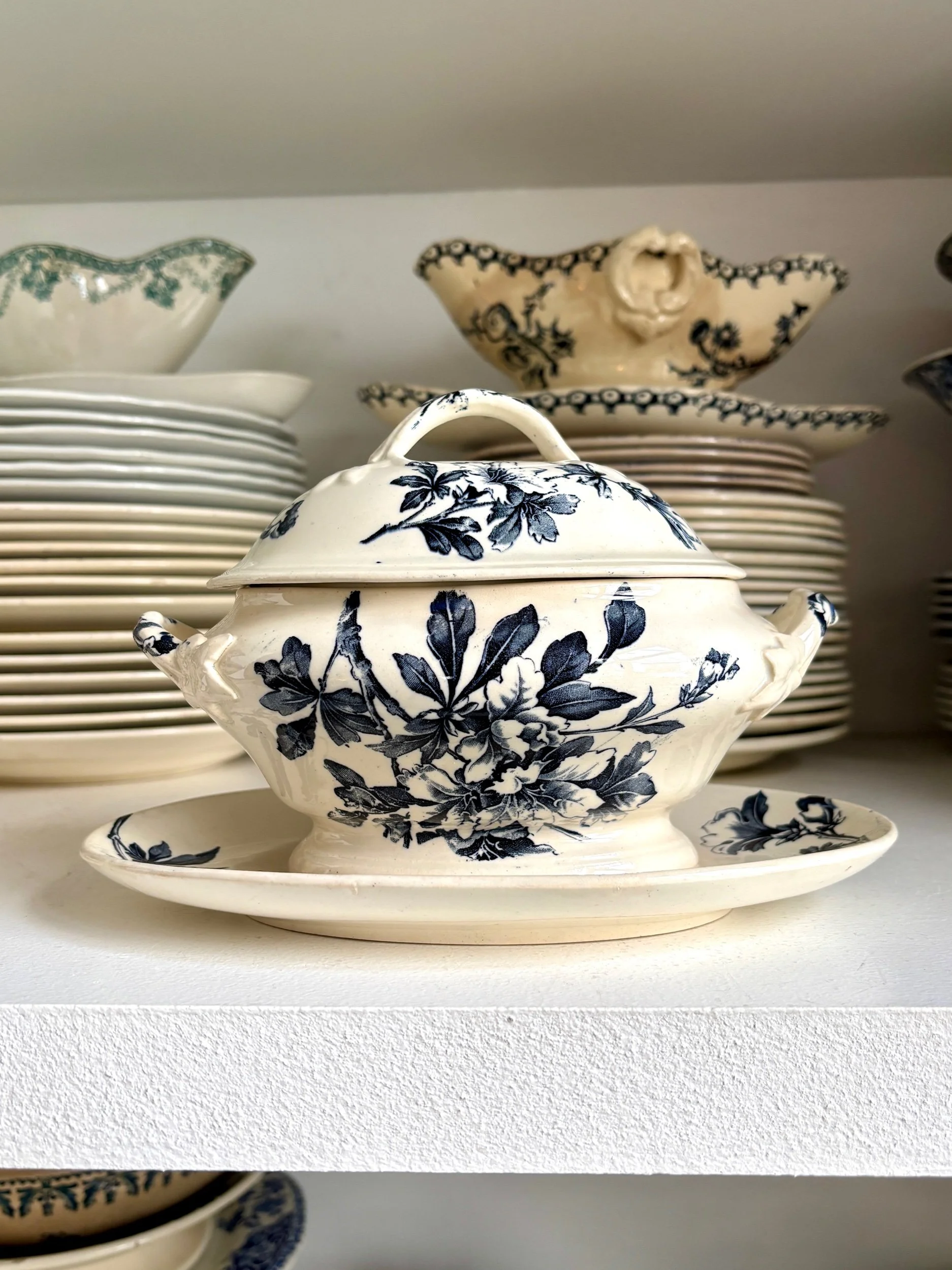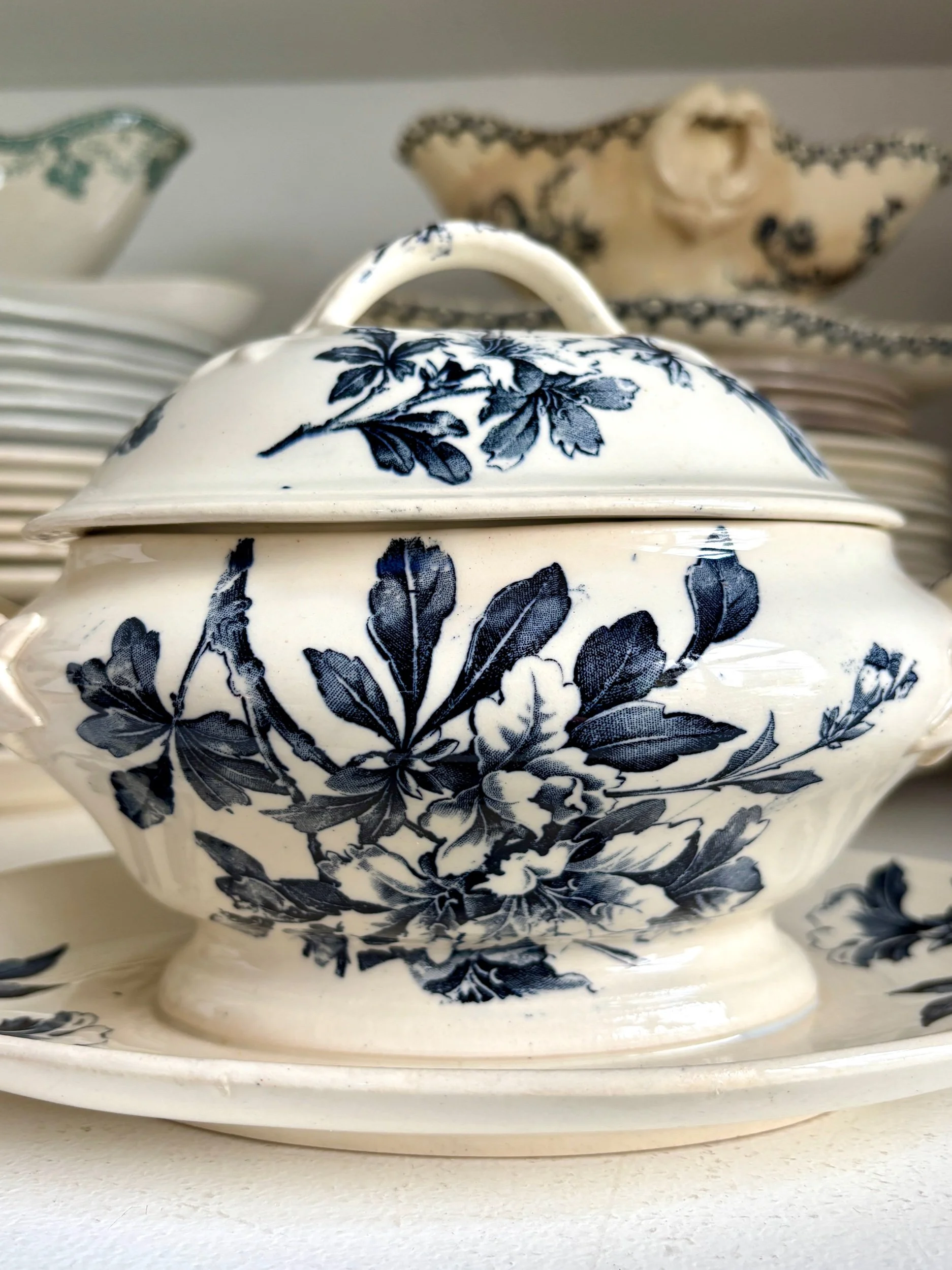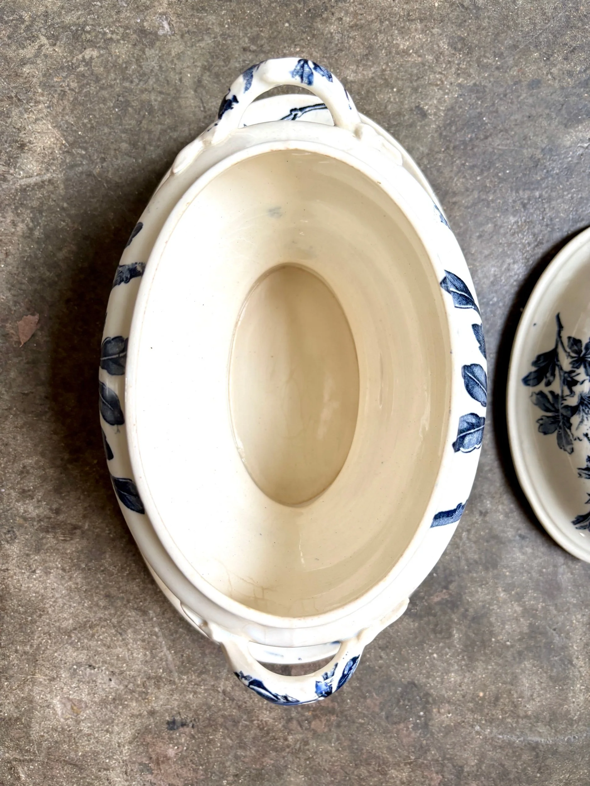 Saucière avec couvercle Lunéville en terre de fer bleue, service "Azaléa"